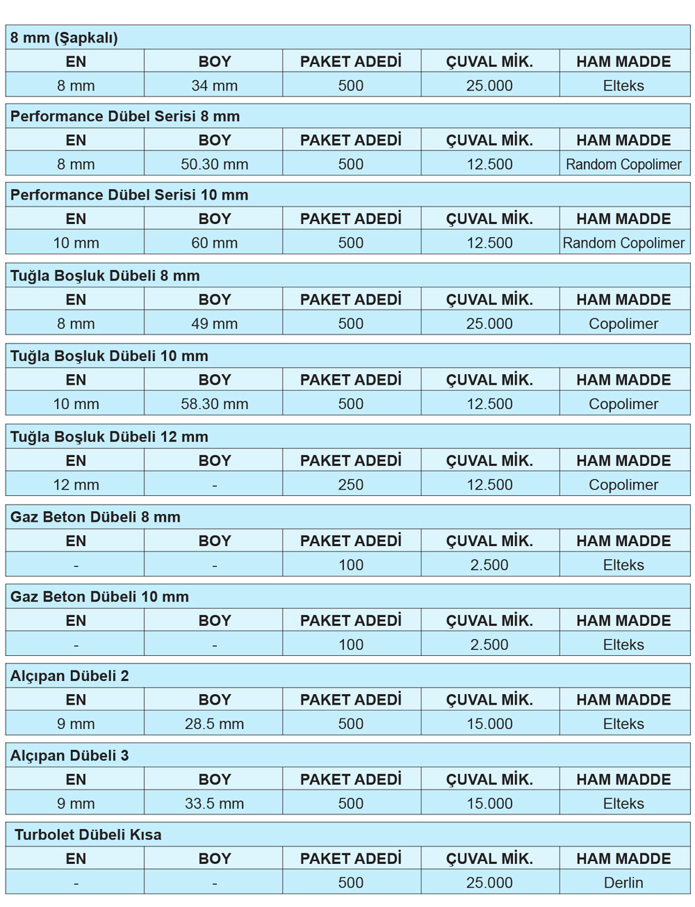 Серия пластиковых дюбелей производится компанией Mex Vida в соответствии с международными стандартами качества.