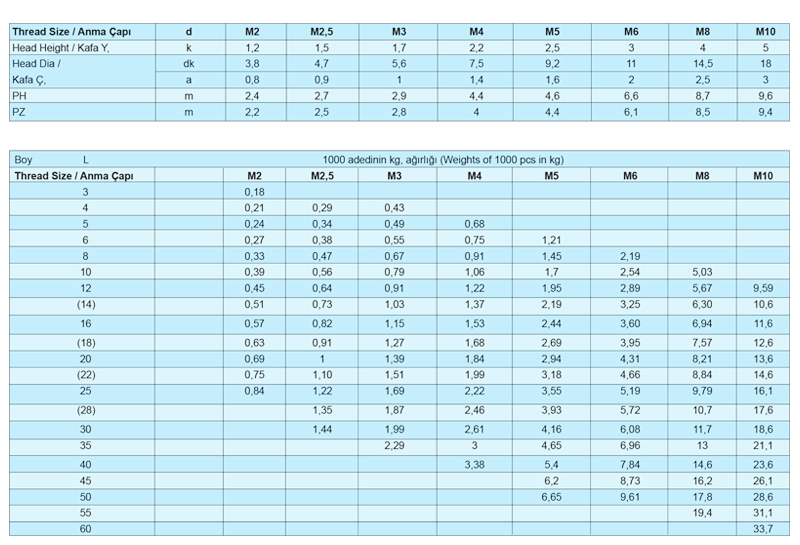 YHB Yıldız Havşa Başlı Vidalar, Mex Vida tarafından uluslararası kalite standartlarında üretilmektedir.